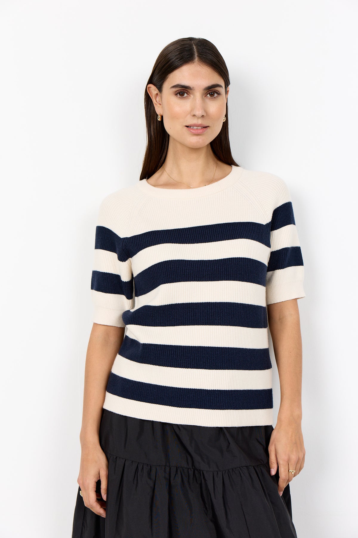 KANITA STRIPE 35 Pullover consists of 50% LENZING™ ECOVERO™ Viscose, 27% Polyester, 23% Nylon. It features a classic round neckline, short sleeves, and bold horizontal stripes. Pair this elegant pullover with tailored trousers or a casual skirt for a stylish look.