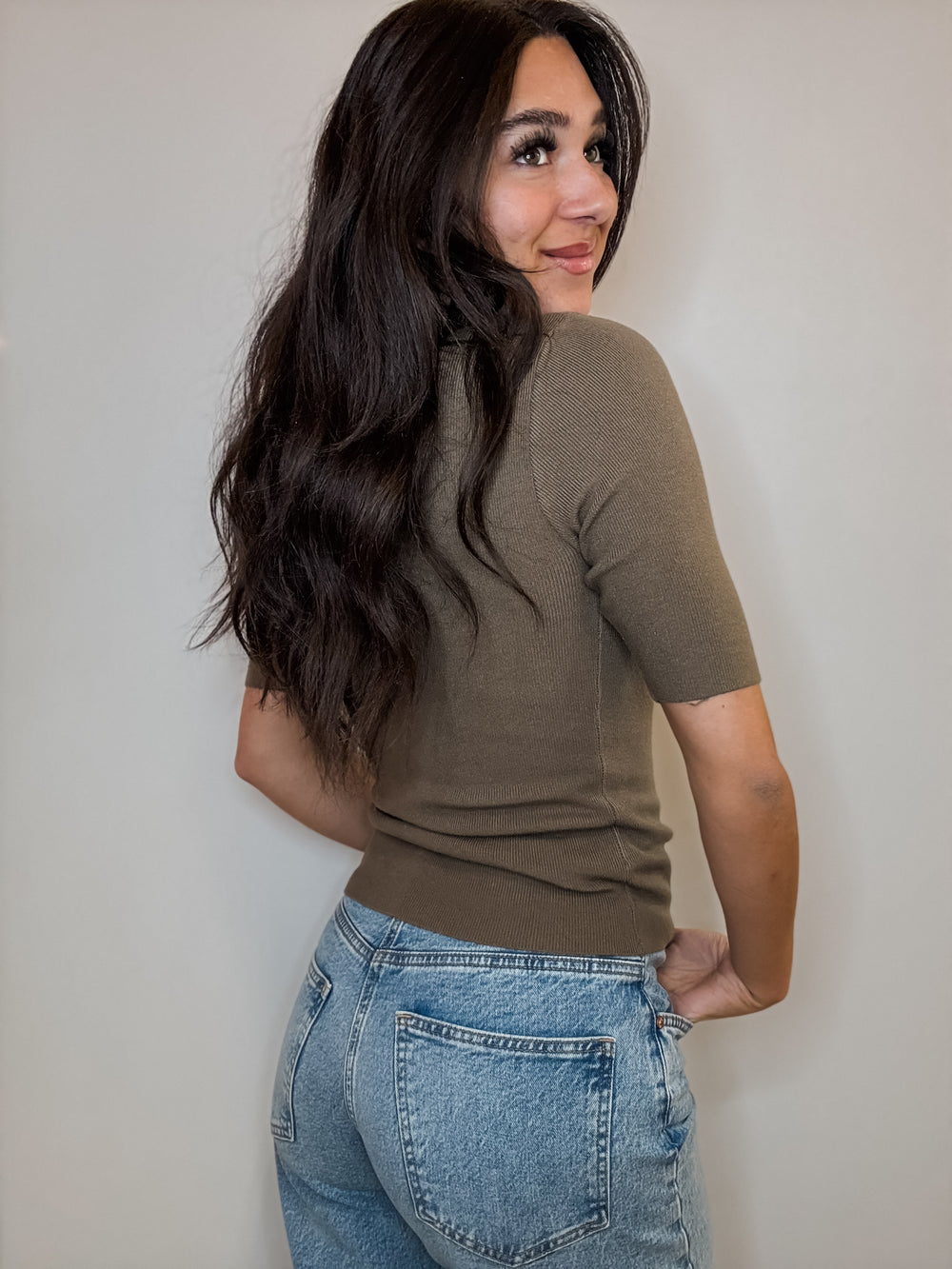 Experience the ultimate comfort and style with our Mockneck Sweater Tee in a stunning khaki green. Made with thin, soft, and stretchy knit material, it provides a flattering fit while the mockneck adds a touch of sophistication. Perfect for dressing up or down, this tee is a must-have in your wardrobe.