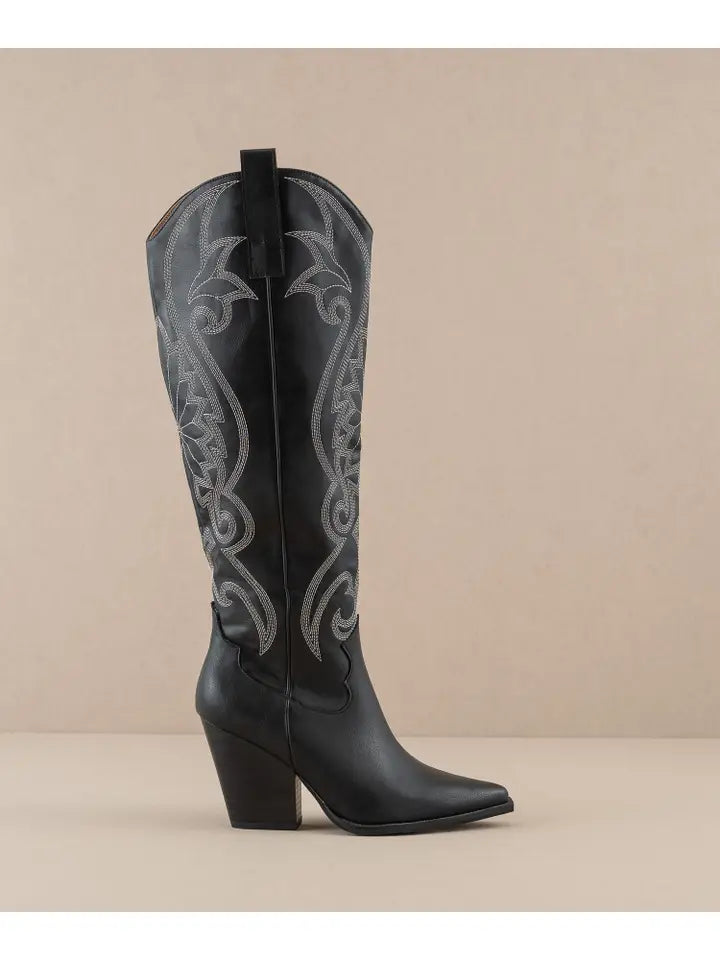 Unleash your inner cowgirl with our Astrid Cowboy Boots! These knee high boots will make you feel fierce and confident, while being very flattering and comfortable. Perfect for any occasion, the boots are a must-have for any fashion-forward individual. Get ready to turn heads and make a statement with these extra tall beauties!