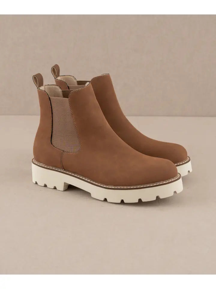 Step out in style with our Gianna Chelsea boot. This classic boot features a lifted edge and chunky treaded sole, adding both height and grip to your look. Perfect for any occasion, these boots will elevate your outfit and keep you steady on your feet.