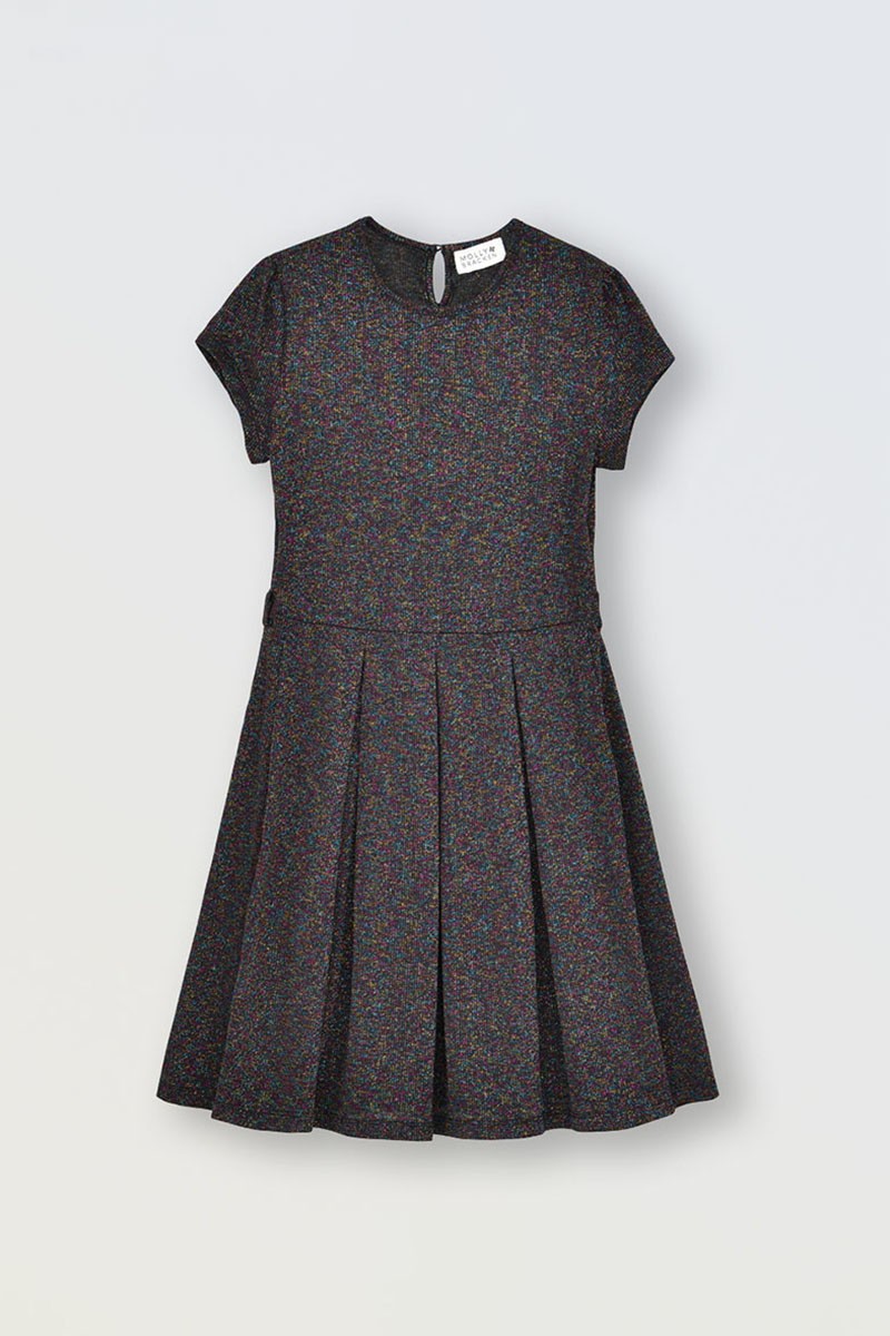 Sparkle and shine in our Girls Sparkle Dress! This dress is not only glitzy and super cute, but also boasts a dazzling multicolor sparkle that will make your little one stand out. The perfect choice for any special occasion or just to make a statement, this dress will bring joy and sparkle into your child's wardrobe.
