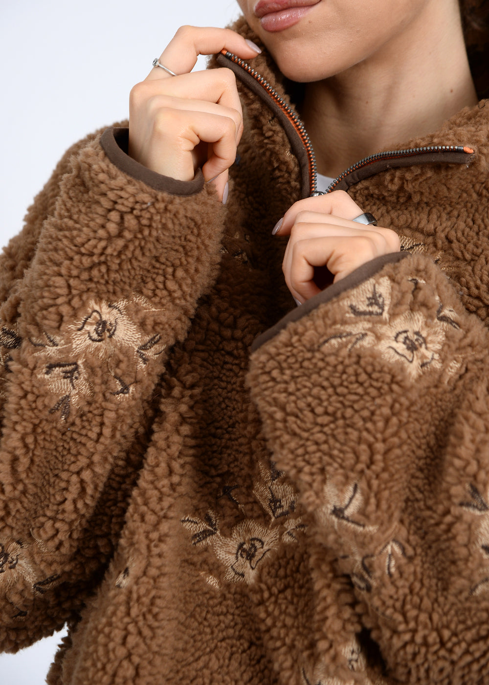 Wrap yourself in the Poppy Anorak Jacket, crafted from super cozy teddy material that keeps you warm and comfortable. Its flattering quarter zip design, along with stunning patterns and colors, makes it both stylish and eye-catching. Perfect for chilly days and everyday wear, this jacket effortlessly blends comfort with fashion for a look you'll love.