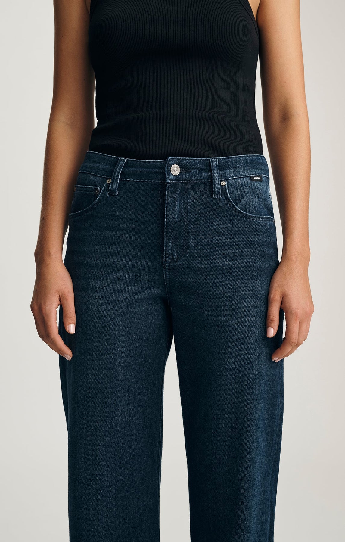 A relaxed wide leg with an easy mid rise, Sabrina is effortlessly flattering from hip to hem. This pair comes in a dark indigo wash with tonal whiskering.