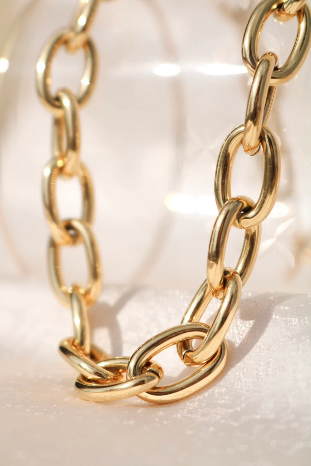 Introducing The Claire: a bold, chunky chain link design. This stylish and unique design offers the perfect balance of statement and subtlety, making it an ideal accessory for any occasion.