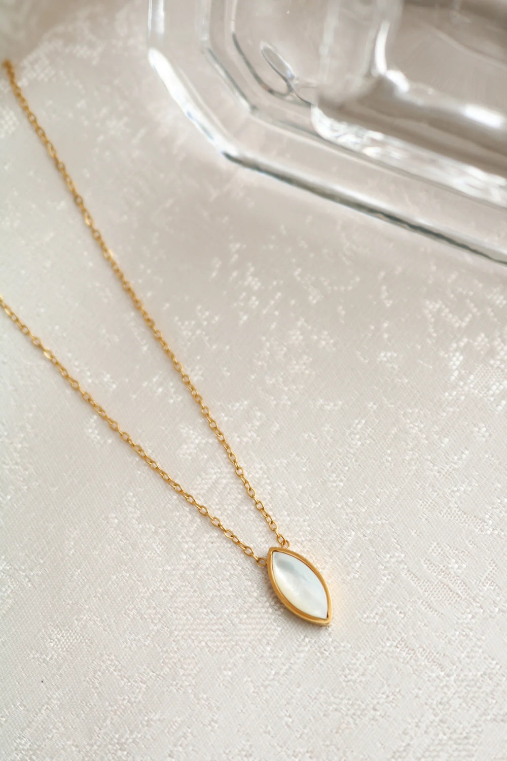 Introducing The Joyce, a dainty chain with a sharp oval shape pendant. Perfect for bringing a touch of delicacy to your look. Its lightweight design ensures it is comfortable to wear all day long.