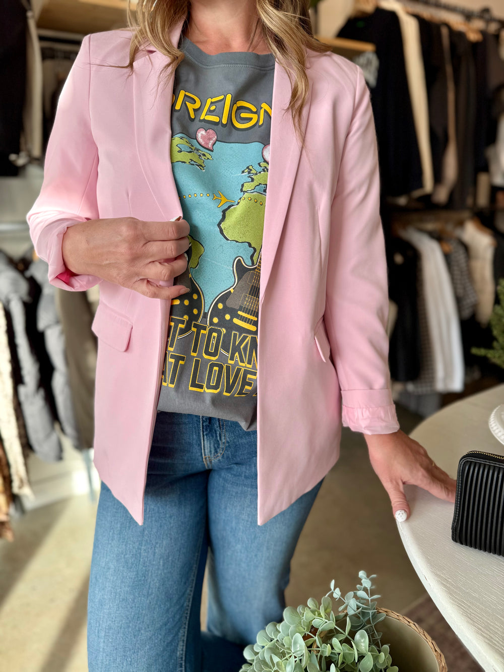 Upgrade your wardrobe with our Bozzy Blazer in Pink. This oversized blazer is both flattering and comfortable, perfect for dressing up or wearing casually. Its playful pink color adds a touch of pretty to any outfit. Add this versatile piece to your closet for a fashionable and effortless look.