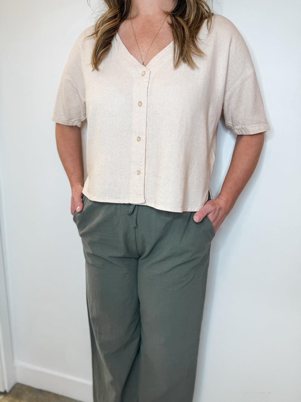 Effortlessly stylish and comfortable, the MyMilo Linen Top is a must-have addition to your wardrobe. Made with light linen material, it flatters your figure and is perfect for a number of occasions. Elevate your style with this essential piece!
