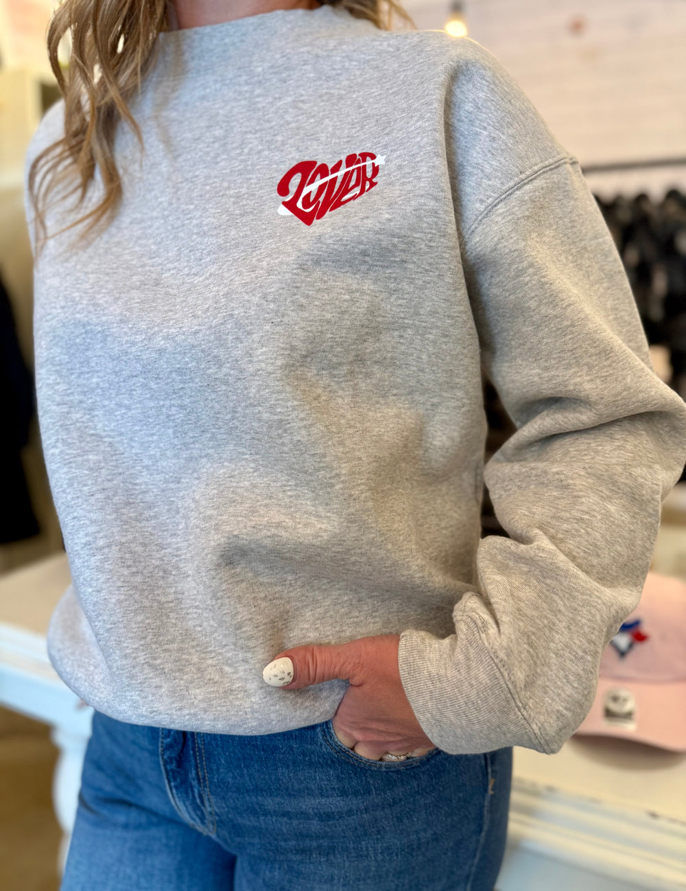 Get ready to cozy up in style with our Lover Sweatshirt! This stunning grey sweatshirt features a fun and cute red heart graphic with white writing. Not only is it stylish, but it's also incredibly comfy and oversized yet flattering, making it the perfect addition to any wardrobe. Fall in love with fashion all over again.