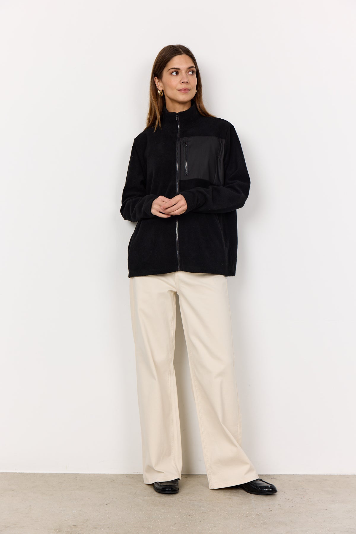 FELICA 1 is a Jacket made from 100% recycled polyester. It features a high collar, full zip closure, and a contrasting chest pocket with a zipper. Pair it with your favorite jeans and boots for a relaxed look.