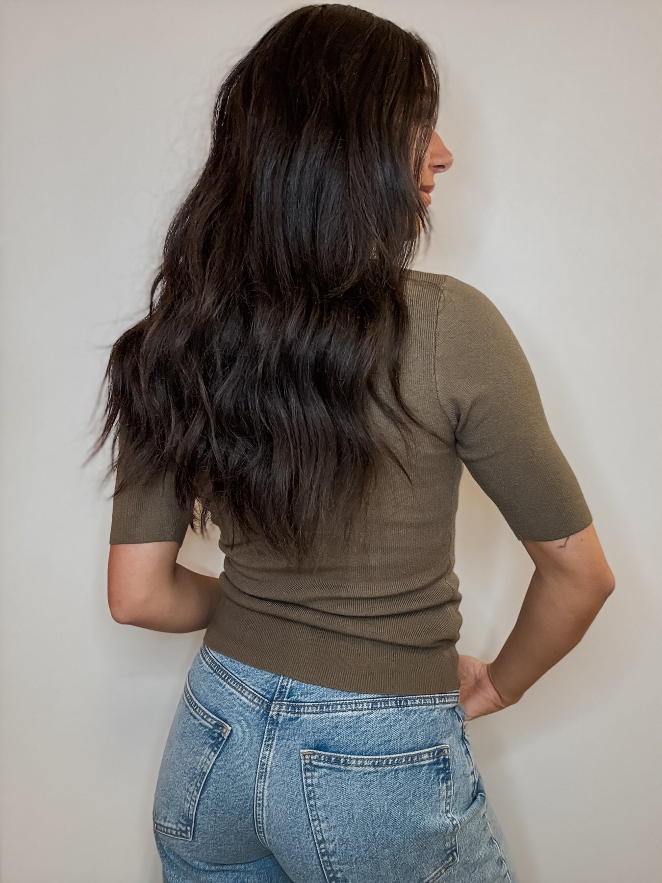 Experience the ultimate comfort and style with our Mockneck Sweater Tee in a stunning khaki green. Made with thin, soft, and stretchy knit material, it provides a flattering fit while the mockneck adds a touch of sophistication. Perfect for dressing up or down, this tee is a must-have in your wardrobe.