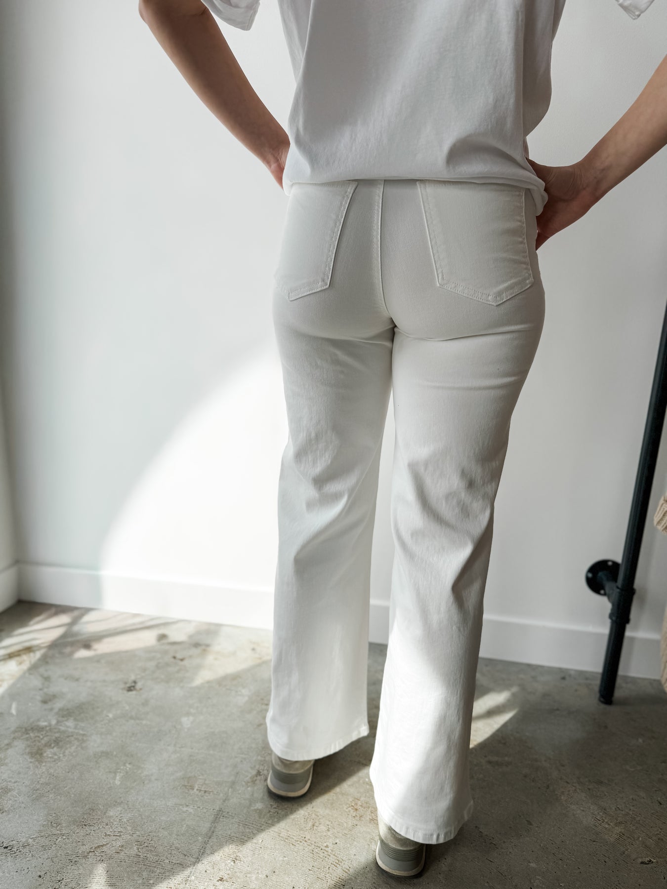 Elevate your everyday wardrobe with our Molly Wide Leg Jeans. These stylish jeans are not only comfortable and flattering, but also feature a beautiful and crisp off white wash that can easily be dressed up for a night out or styled for everyday wear. Add them to your collection and feel confident and stylish wherever you go!