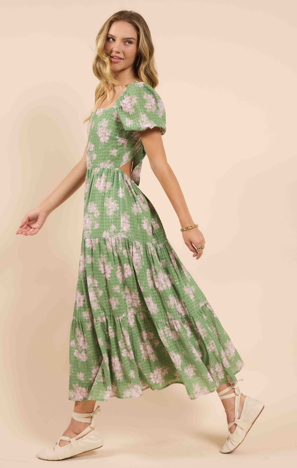 Get ready to turn heads in our Rainy Days Maxi Dress! This stunning dress features a beautiful green and purple floral pattern that will make you stand out in all the right ways. The light and airy fabric creates a flowy, flattering silhouette, while the puff sleeves, back tie detail, and square neckline add a touch of elegance. Perfect for any special occasion, this maxi dress is a must-have in your wardrobe. Don't miss out on this eye-catching piece!