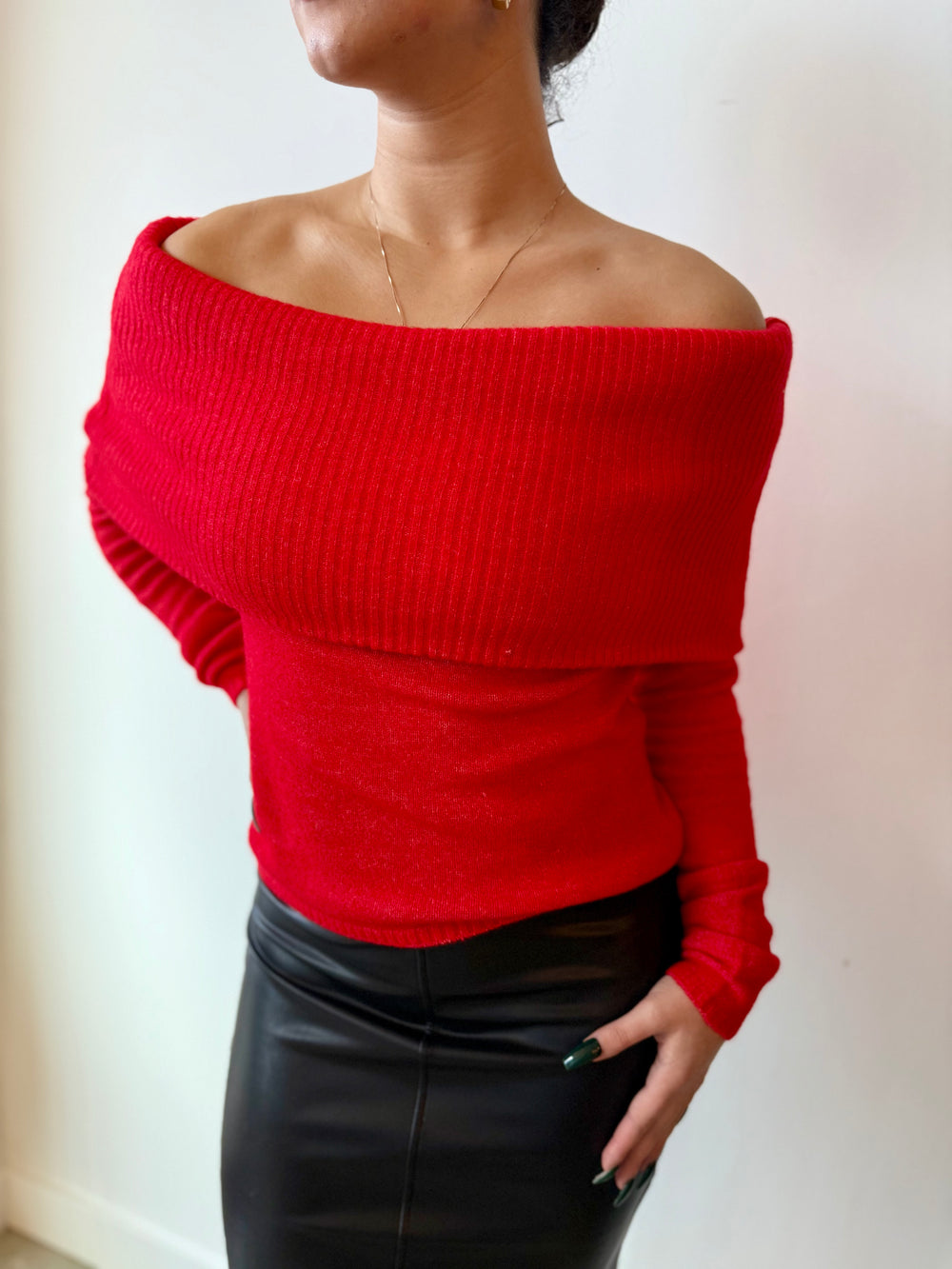 This striking and beautiful red Riko Off-Shoulder Sweater is perfect for making a bold statement in all the right ways. The flattering fit will make you feel confident and comfortable, while the soft and comfy material ensures a cozy and stylish look. Add a pop of color to your wardrobe with this must-have sweater!